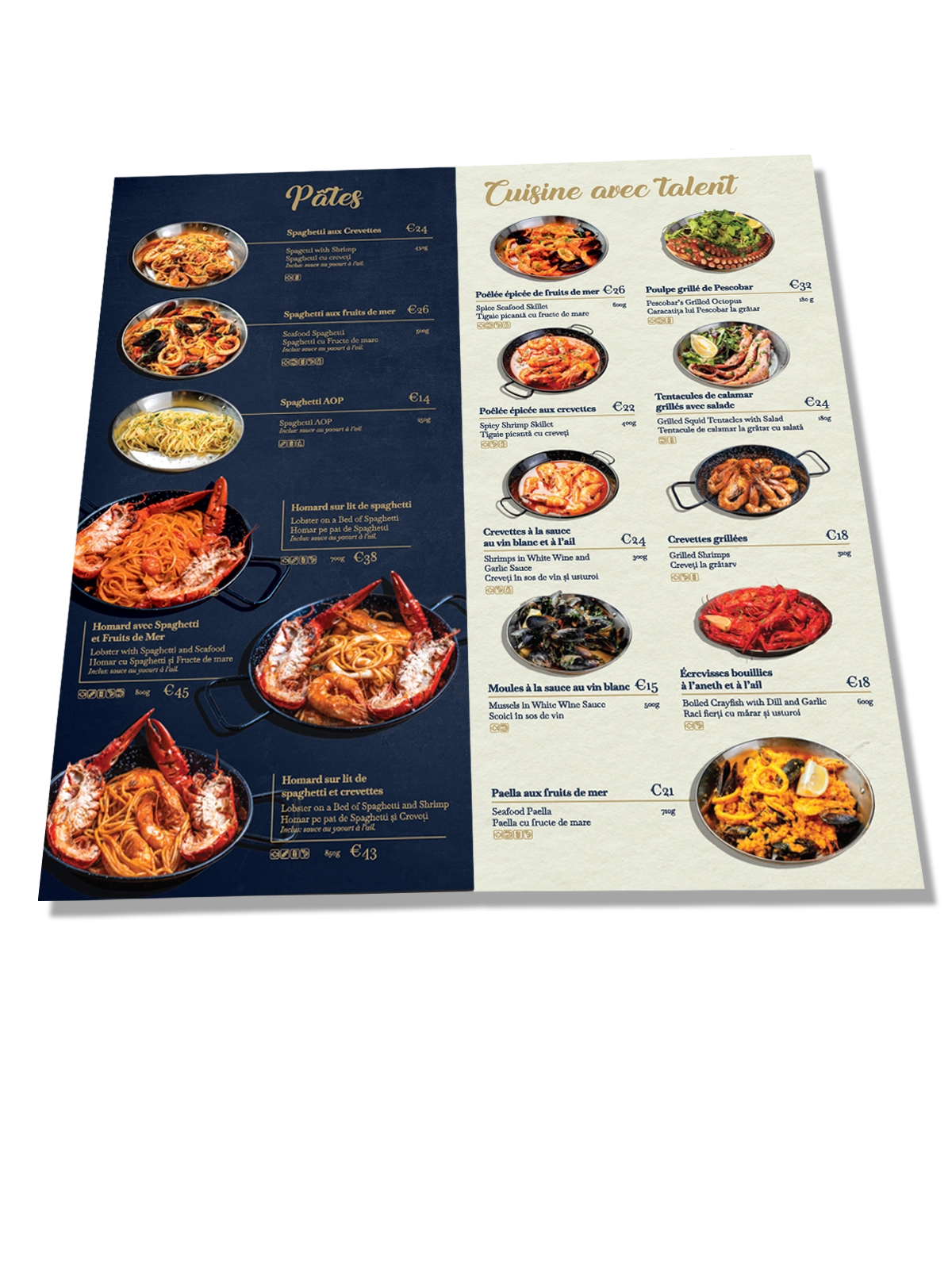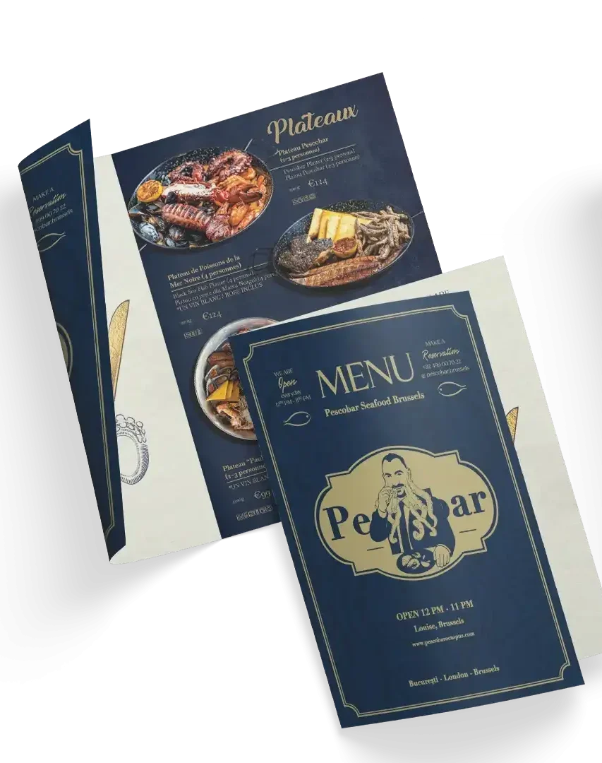 Facem meniuri indestructibile. Printăm pe material sintetic premium care arată ca hârtia, dar rezistă ca plasticul. Poți să torni bere, vin sau supă pe el; se șterge cu o cârpă și arată ca nou. Zero plastifiere, zero laminare. Meniul tău va arată impecabil pentru cel putin 12 luni.
